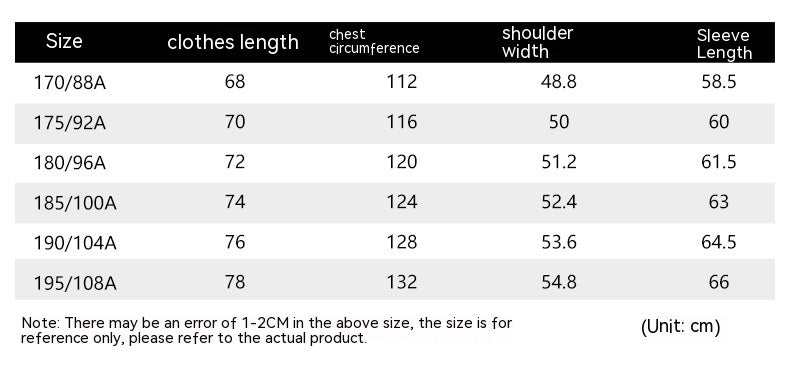 Size: 170,175,180,185,190,195